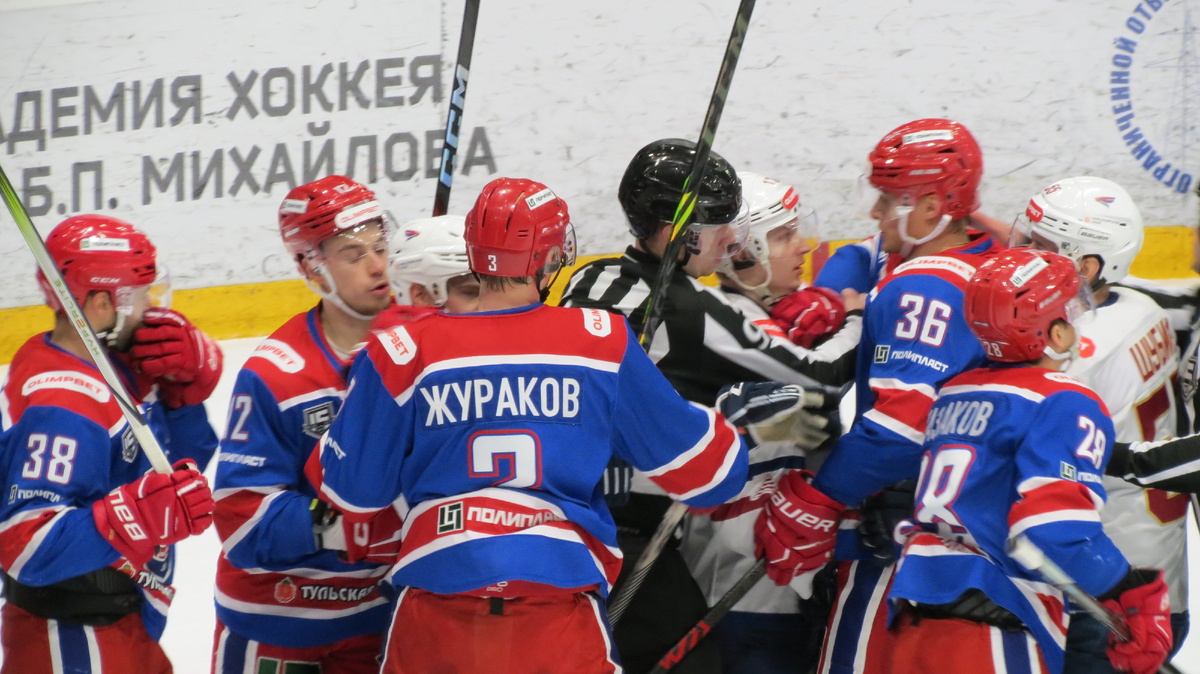 Хоккеисты АКМ провели второй матч в рамках домашней серии. На сей раз подопечным Олега Горбенко противостоял красноярский «Сокол», который хоть и занимал перед игрой 19 строчку в турнирной таблице, но представлял из себя угрозу для любого соперника. К тому же, красноярцы проводили первый матч при новом главном тренере Юрие Файкове. По традиции начну с вратарских гляделок Старт поединка выдался равным. Хоккеисты обеих команд поочередно угрожали воротам друг друга, но и Вадим Пастух, и Илья Румянцев, вышедшие в старте, не позволяли открыть счет. Ближе к экватору первой трети АКМ прибрал инициативу к своим рукам и начал изрядно нагружать оборону соперника. Под занавес периода туляки оказались в большинстве, а Александр Локтев его реализовал, подставив клюшку на пятаке под бросок Глеба Петрова. Вторая двадцатиминутка также прошла в равной борьбе. «Сокол» попытался отыграться в большинстве, но туляки грамотно оборонялись, и почти все броски гостей застревали в ногах игроков АКМ и не доходи