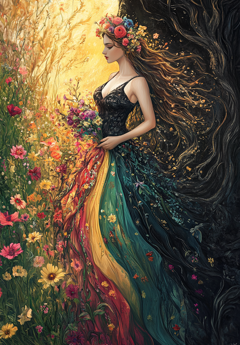 Персефона, королева подземного мира и богиня весны, олицетворяет величайший путь трансформации. Она объединяет в себе дуальность — свет и тьму, жизнь и смерть, рост и увядание. Её история напоминает нам, что перемены неизбежны и что для трансформации часто нужно спуститься в неизвестность, чтобы вернуться более сильными и обновленными.