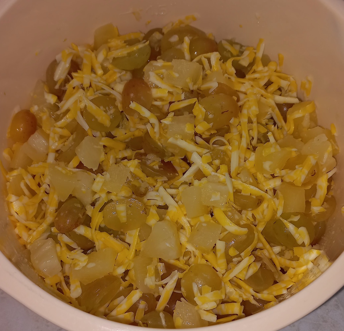 Салат научила делать знакомая. Очень вкусный получается, оригинальное сочетание продуктов, необычное. Если виноград заменить копченой курицей или индейкой, то получится другой салат, не менее вкусный. Попробуйте сделать, возможно он станет вашим любимым салатом.
