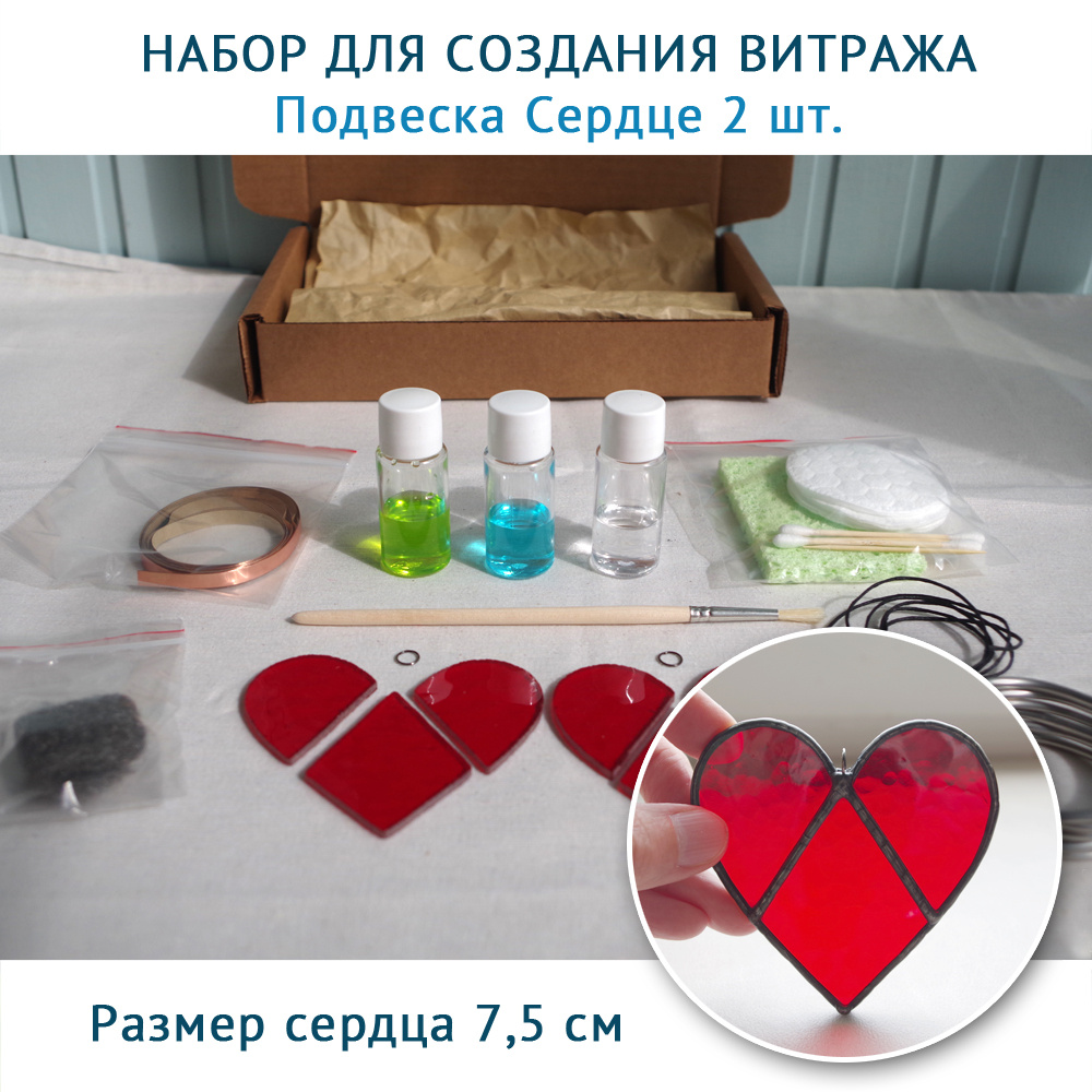 Подвеска Сердце 2 шт. Для тех, кто хочет попробовать себя в создании витражей, но не знает будет ли заниматься всерьёз. Или не хочет покупать кучу дорогих инструментов и материалов для старта. Или не имеет возможности попасть на мастер-класс к витражисту. Тадам. Теперь есть набор для изготовления витража Тиффани + видео мастеркласс. Набор для создания двух подвесок Сердце, размер 7,5 см. Вам только нужно приобрести (а может у вас и дома есть, или у знакомых) паяльник. И всё. При покупке набора я даю ссылку в приватную группу в ВК, где находятся обучающие видео + чат с поддержкой. ----- Купить набор можно на моём сайте www.zirikglass.ru на Ярмарке мастеров www.livemaster.ru/zirikglass в ВК www.vk.com/zirikglass