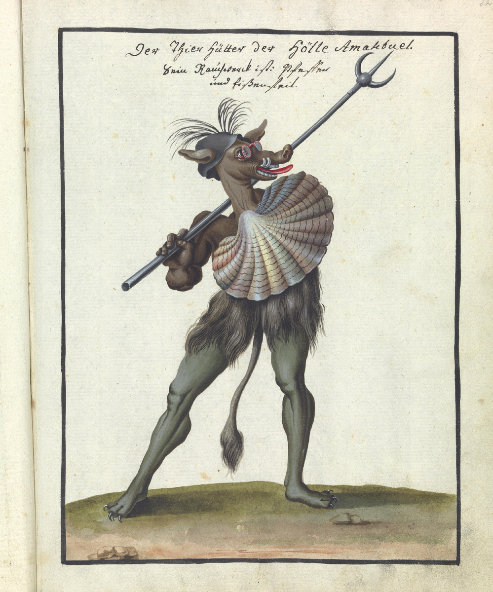 Этакая преинтереснейшая рукопись по магии, титульный лист которой благолепно украшает надпись "Noli me tangere" или "Не прикасайся ко мне". Автор этой книги (которая по-русски звучит примерно так: "Редкое собрание всего магического искусства, составленное самыми известными мастерами этого искусства") искусно подобрал изображения для сборника - в высшей степени иронично (особенно если вспомнить, что XVIII век - это эпоха фривольностей и беспечной придворной жизни, похожей на маскарад). Этакий Бестиарий сатанинской свиты... в открытом доступе (на сайте Wellcome Library).