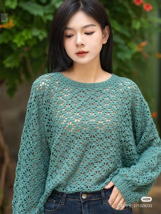 Схемы ищите среди фотографий во всех галереях Ажурный пуловер с укороченными рукавами три четверти с втачными проймами связан крючком. Основа модели собрана и красивых цветочных мотивов, рукава напротив сплошным ажурным узором, цветы - это романтика и нежность.