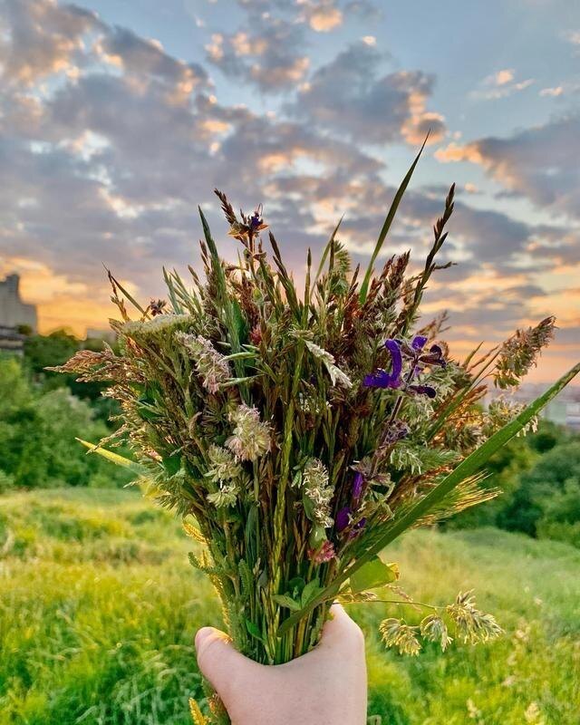 Я их как собирал? Колокольчик чтоб был к колокольчику, Василек к васильку И ромашка к ромашке была. Мне казалось, что будет красивей букет, Если только одни васильки, Или только одни колокольчики, Или только ромашки одни Соберутся головка к головке. Можно стебли подрезать и в воду поставить в стакан. Постепенно я понял, Что разных цветов сочетанье (Ярко-желтого с белым, Василькового с белым и желтым, Голубого с лиловым, Лилового с чуть розоватым) Может сделаться праздником летних полуденных красок, Может сделаться радостью. Надо немного условий: Просто капельку вкуса Или, может быть, капельку зренья — И букет обеспечен. Хватает в июне цветов! Так я их собирал. Но (во всем виновата незрелость) Я наивно считал, Что простые, невзрачные травы (это кажется нам, будто травы бывают невзрачны) Недостойны приблизиться К чистым, отборным и ясным, Собираемым мною в букет, удостоенным чести цветам. Обходил я пырей, Обходил я глухую крапиву, «Лисий хвост» обходил, и овсюг, и осот полевой, И пушицу