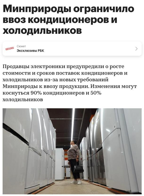 Цены на холодильники и кондиционеры взлетят в России из-за новых требований Минприроды