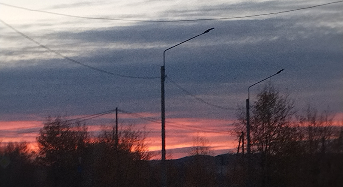 И летит мой красный шар, прямо к небосводу. Это стихотворение С. Я. Маршака я рассказывала на утреннике в детском саду. Знаю точно, потому что у мамы есть моя фотография, где подписано "Люба читает стихотворение Маршака День седьмое ноября". Но до 7 ноября еще почти две недели, да и праздника теперь такого нет, а вот стихотворение осталось. В окно я конечно посмотрела. Уже вечер, солнце садится, и небо становится невероятно красивым. Поздняя осень осень уже не привлекательна. На деревьях трепыхаются последние сухие листья. Они уже не красят деревья, и даже хочется, что бы они скорее облетели. Земля тоже слякотная. Днем был н