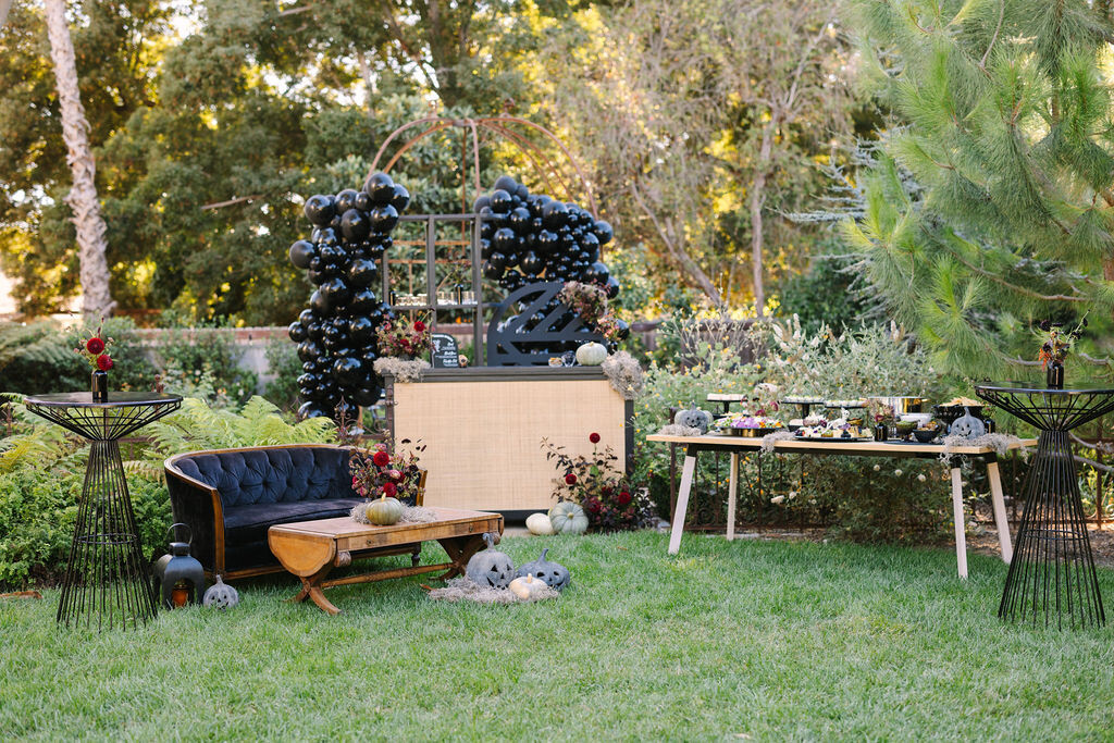 Приближается канун Дня всех святых, и настало время вызывать духов мертвых… А лучше всего это делается с вкусными коктейлями! Эта вечеринка только для взрослых, ведь она не только в строгом стиле, но и подразумевает вечеринку с алкоголем. Приготовьтесь к вдохновению, чтобы устроить свою собственную жуткую коктейльную вечеринку! А чтобы оформить свой праздник не хуже, чем профессиональный декоратор, смотрите нашу коллекцию декора и посуды! Как всегда, мы начинаем с потрясающего приглашения! Здесь прекрасно всё: чёрные конверты, рисунки от руки и жуткая атмосфера. Сначала о главном — бар! Это главное событие на такой вечеринке 🙂 Детали из ротанга и черные акцента идеально сочетаются с этой вечеринкой в честь Хэллоуина. И, наконец, эти великолепные цветы, которые завершили жуткую, но красивую эстетику. Для гостей оформили несколько удобных зон отдыха, где можно было посидеть с коктейлями и поболтать. Тыквы вышли очень необычные, пепельными — как вам? Но мы любим не только выпить, но и