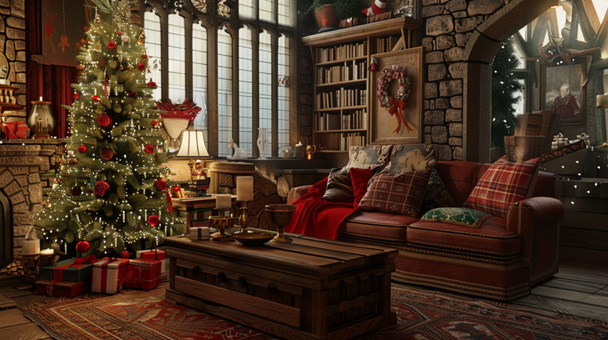 Главное направление декора к новому году в стиле мальчика-который-выжил — английская классика, слегка приправленная очертаниями средневекового замка.