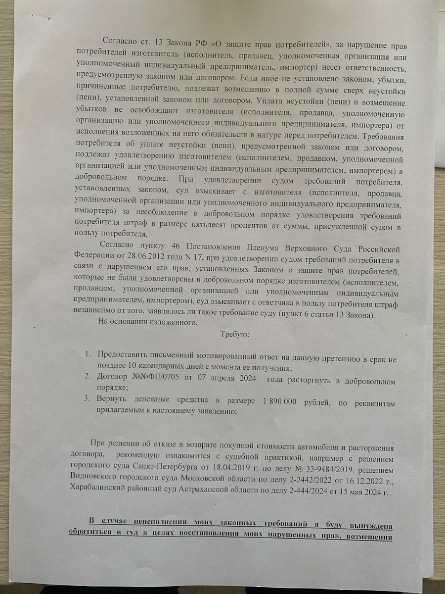 - Требование о расторжении договора купли-продажи и возврате денежных средств.