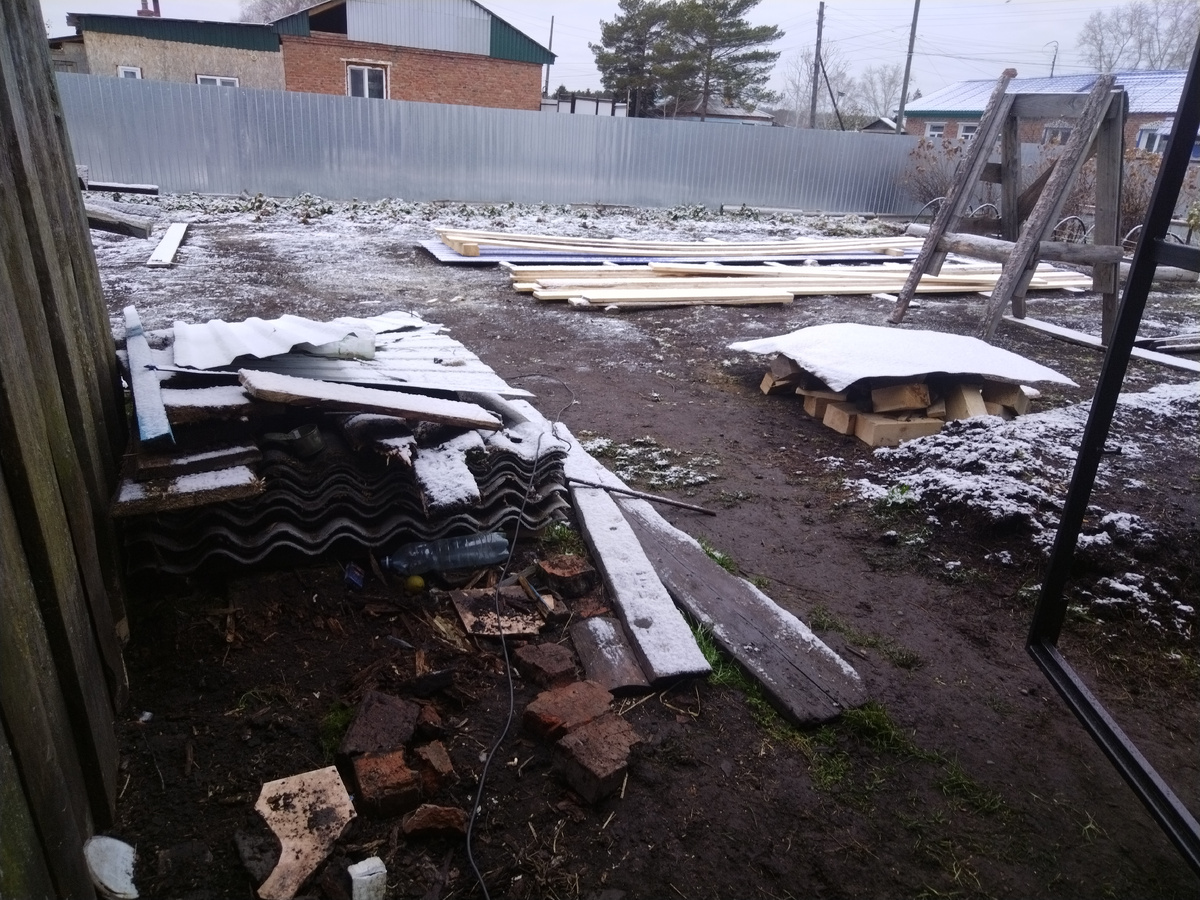23 октября. Снова небольшой снежок. Сегодня собираемся работать до поздна. Нужно уже завязывать с этим навесом. Осталось-то обшить каркасы стен, ворота, вставить поликарбонат в окна, вмонтировать замки и задвижки. Успеем ли за один день? Навряд ли. Руслан даёт мне размеры, а я пилю профлисты. Пилю, подаю. Руслан прикручивает. Как мы не торопимся, но чувствуем, что не успеем сегодня закончить. Много возни с этими воротами, окошками. В итоге успели обшить только каркасы двух стен и вставить поликарбонатные окна. Дорабатывали в полной темноте с налобными фонарями. Завтра Руслан будет дорабатывать один. Мне надо будет мотаться по Таре, поменять покрышки, поставить стойки на "Пятнашку". Скоро мне предстоит путешествие со всей семьёй в Омск и Москаленки. Желающим поддержать мой канал: Сбербанк 2202 2050 3915 4056 Всем пока. Фото автора. Спасибо за прочтение и поддержку!
