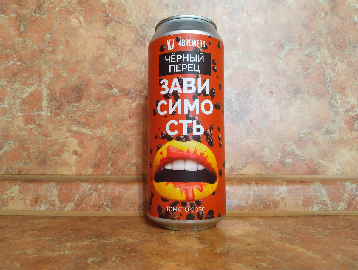 Люблю я линейку от Четырёх Пивоваров Зависимость - очень вкусные и хорошие томатки там - образцовые, можно сказать. И мимо новых вкусов стараюсь не проходить. Потому и в гостях у меня сегодня Зависимость Чёрный Перец - самая новая новинка))) Насыщенный светлый кислый эль. Сочный томатный вкус, чуть соли и яркий аромат чёрного перца. От одной дозы ничего не будет. Смело наливайте бокал. Вряд ли вам захочется повторить это завтра. А уж тем более послезавтра. Ну, может быть, только по пятницам. Вы совершенно свободны от всяких условностей. Если захочется, всегда можно сделать это украдкой. И возьмите салфетку, у вас что-то красное на губах. Алкашка/плотность - 6.9%/13%. IBU - ???. Стиль - томатный гозе. Объём - честная баночка 0.5 л. Цена - 350 тугриков в разливайке. Состав - вода подготовленная(исправленная), солод пивоваренный ячменный, солод пивоваренный пшеничный, томатная паста, лактоза, соль поваренная пищевая, чёрный перец, паприка копчёная, базилик, кориандр, хмель прессованн