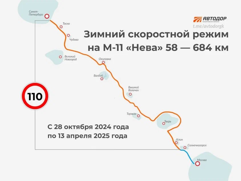 С 28 октября 2024 года на платных трассах М-11 «Нева» и М-4 «Дон» действует снижение скоростного лимита на отдельных участках. Компания «Автодор» приняла такое решение в связи с подготовкой к зимним условиям и необходимости повысить безопасность движения в холодный период. «Автодор» плавно снижает скорость. Необходимо предотвращать аварийные ситуации и повышать безопасность в период непогоды. В зимние месяцы на дорогах наблюдается угроза обледенения. Новые ограничения позволяют водителям быстрее реагировать и обеспечат дополнительные меры безопасности на высокоскоростных трассах. Ограничения будут действовать до апреля 2025 года , когда завершится зимний сезон. После этого на трассах вернутся прежние лимиты в 130 км/ч на участках, где это возможно, в зависимости от состояния дорог и погоды. Вопрос читателей: