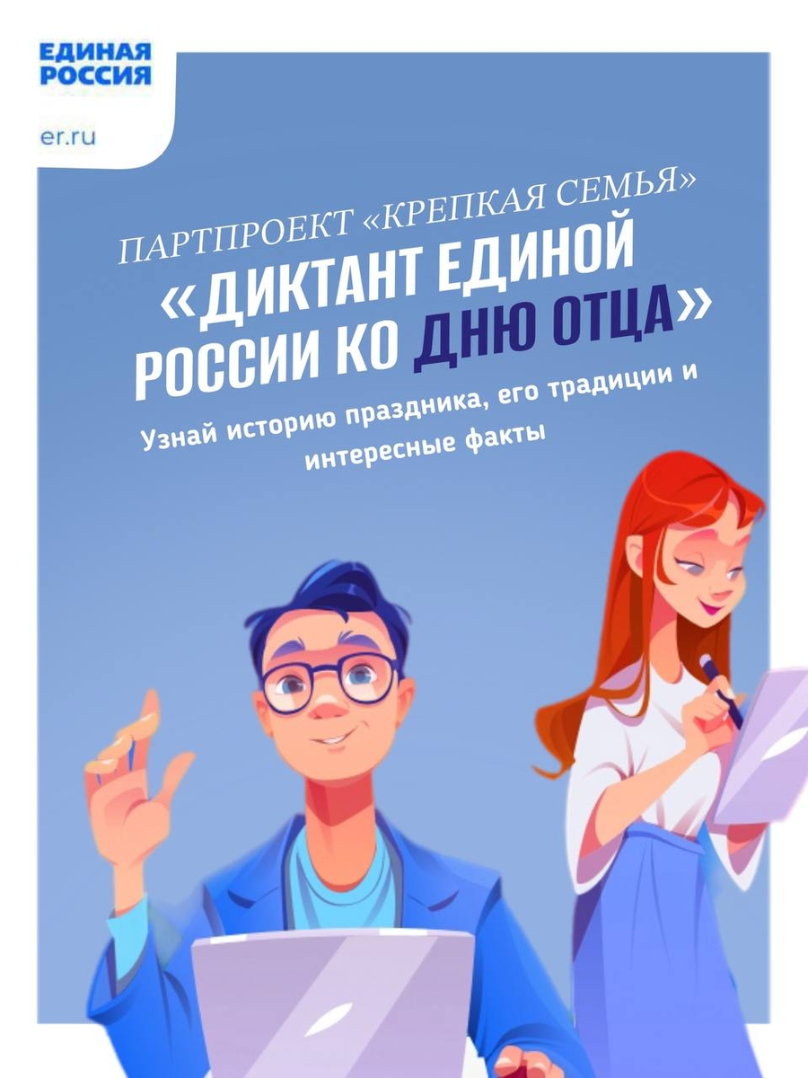 Проверьте свои знания, пройдя увлекательный диктант от партийного проекта «Крепкая семья». Тест состоит из 18 вопросов с несколькими вариантами ответов о празднике День отца. 20 октября Россия отметила День отца. Он появился в 2021 году как парный памятный день ко Дню матери. Праздник подчеркивает важность сохранения традиционных семейных ценностей и роль мужчин в воспитании детей. Узнай историю праздника, его традиции и интересные факты! Лучших участников ждут призы. Удачи! Диктант будет доступен на сайте проекта https://7ya.er.ru/dictation до начала ноября. #ЕРДНР #ДеньОтца #ЕдинаяРоссия