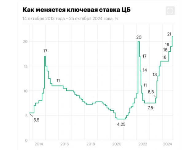 25 октября Банк России поднял ключевую ставку на целых 2 процентных пункта, установив новый исторический рекорд на уровне 21%. Это событие стало знаковым, ведь ранее ставка достигала 20% в конце зимы — начале весны 2022 года.