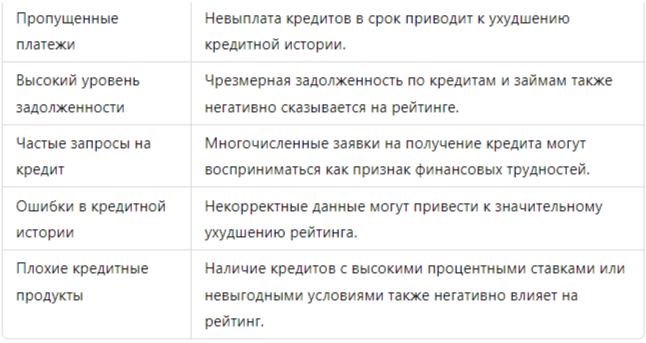 Плохой рейтинг кредитной истории может возникнуть по ряду причин: