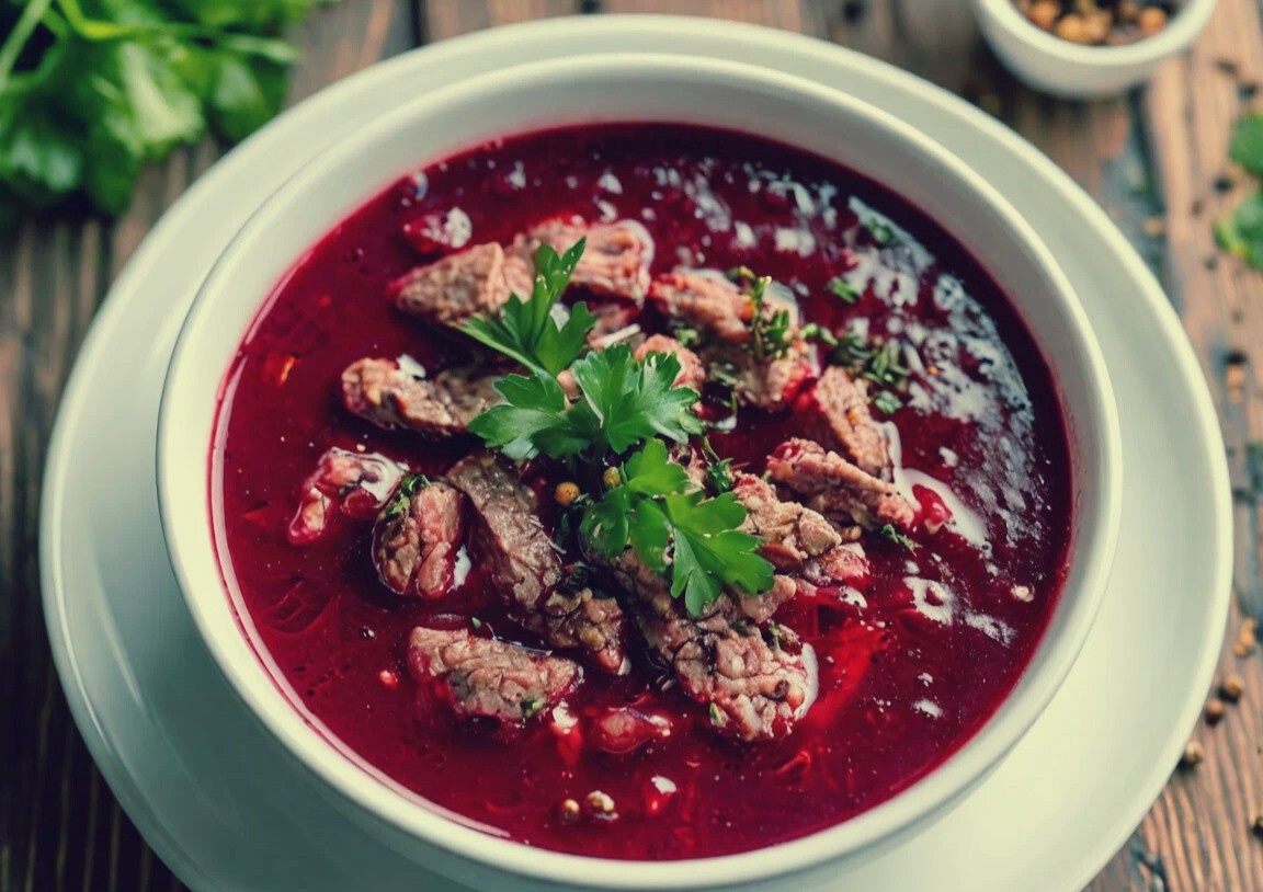 Наступила холодная пора. Хочется чего – то горячего на обед. Предлагаю рецепт свекольника, возможно, он придётся вам по вкусу. 1. Мясо режем кубиками, солим, перчим, добавляем специи и обжариваем на среднем огне до полуготовности. 2. Ставим на плиту кастрюлю с водой (5 л.) и после закипания, добавляем обжаренное мясо. 3. Свеклу трём на крупной тёрке, добавляем уксус и перемешиваем. Даём настояться 5 -10 минут и перекладываем в кастрюлю. 4. Лук мелко шинкуем и обжариваем до золотистого цвета. 5. Морковь и чеснок трём на тёрке и добавляем на сковороду к луку. Жарим ещё пару минут. 6. Томатную пасту растворяем в стакане кипятка и добавляем к обжарке. Солим, добавляем душистый перец, гвоздику и тушим на медленном огне 3 – 4 минуты. 7. Картофель режем кубиками и добавляем в кастрюлю. 8. За 10 минут до готовности добавляем в свекольник зажарку. 9. Варим свекольник на среднем огне до полной готовности картофеля. Досаливаем. Ещё больше рецептов можно увидеть на моём канале Рецепты с Фан
