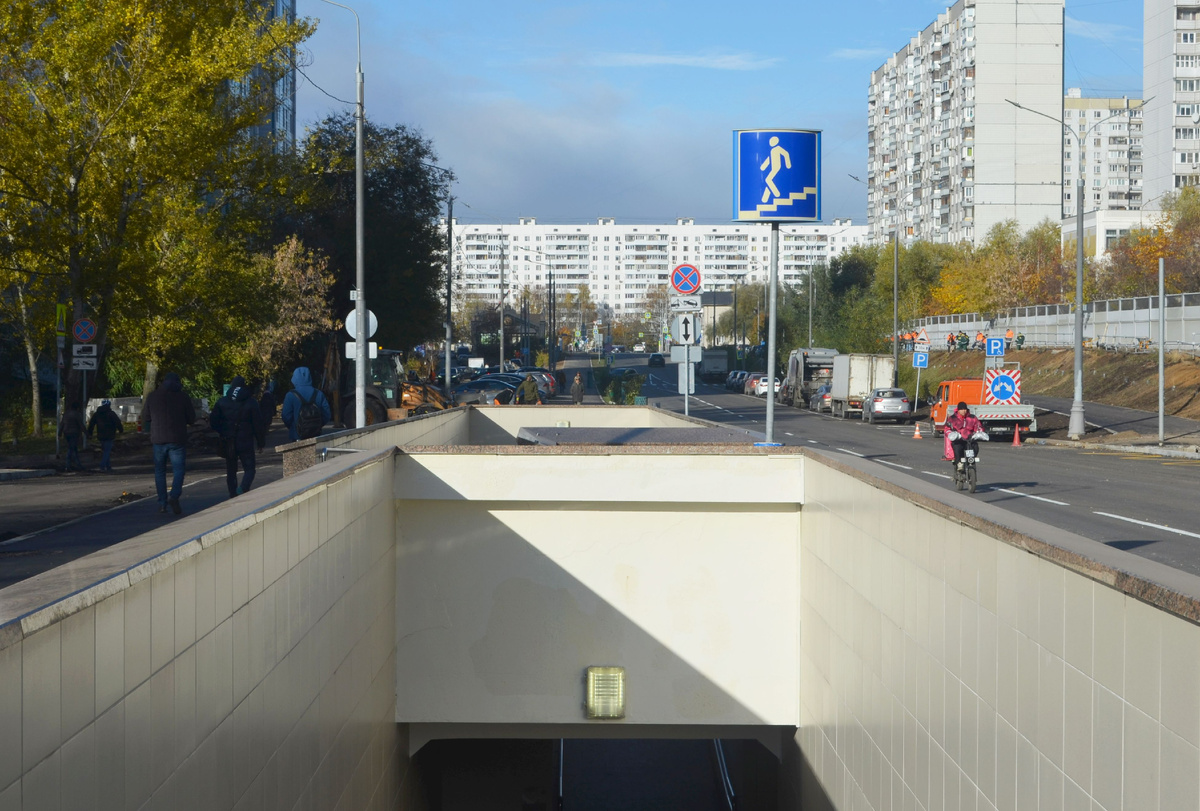 Но близость школьных и дошкольных учреждений, являвшаяся главным аргументом против строительства новой автомагистрали, сделала свое дело. Власти услышали голос народа, отреагировали на общественное беспокойство по поводу безопасности детей и выдали свой ответ в виде постройки подземного перехода через дорогу шириной в две(!) полосы. Перехода не абы какого, а полноценного: с пандусами, с мрамором и гранитом в качестве отделочных материалов, подсветкой и прочими благами московского благоустройства, пардон за тавтологию.
