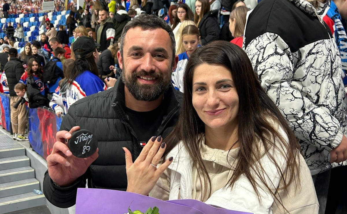Столь неожиданный поворот случился во втором периоде встречи. Прошедший накануне матч АКМ - «Сокол» стал по-настоящему незабываемым как минимум для двух болельщиков тульского клуба. Во втором периоде камеры, транслирующие игру, внезапно «выцепили» на трибунах Юрия и Елену. В этот момент молодой человек опустился на колено и, достав коробочку с кольцом, предложил спутнице выйти за него замуж. - Честно говоря, я даже не сразу поняла, что произошло: кольцо, букет... И вдруг вся арена стала кричать «Поздравляем!» Конечно же, я ответила «Да!», - поделилась эмоциями невеста. По случаю знаменательного события игрок АКМ Сергей Теряев подарил паре на память шайбу с автографом. Елена и Юрий назвали её своим первым семейным сувениром. Читайте полную версию статьи на сайте MySlo.ru: