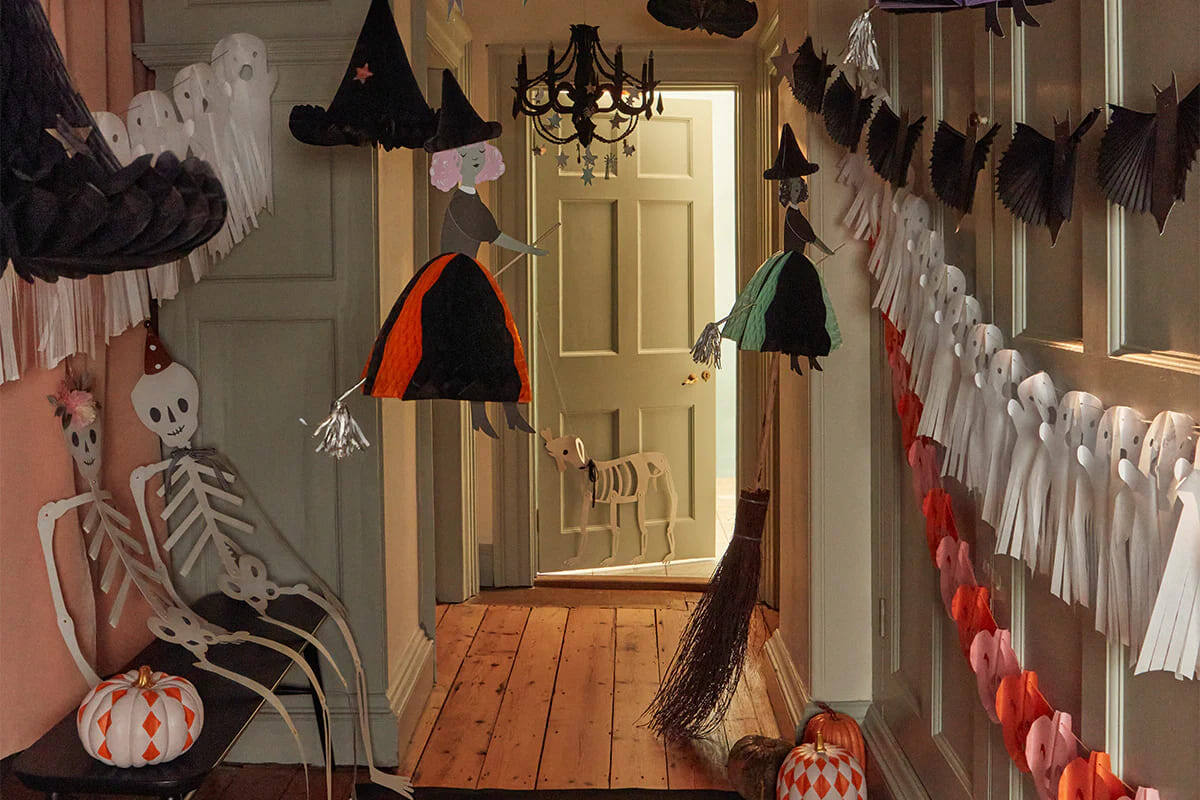 Хэллоуин быстро приближается, и для многих это самое волшебное время года, после Нового года! Это не только возможность перевоплотиться в любимых персонажей с помощью изобретательных костюмов, но и волнение от украшения дома. А чтобы оформить свой праздник не хуже, чем профессиональный декоратор, смотрите нашу коллекцию декора и посуды! Начните с входной зоны — развесьте перед входом в комнату гирлянды, шары и замечательных скелетов от Мери Мери. Не забудьте самое главное украшение праздника — тыквы! Используйте сочетание настоящих и декоративных, у нас есть чудесные тыковки-соты. Кстати, тыквы можно вырезать заранее и спрятать в морозилку. Так они не испортятся, а ещё будут здорово выглядеть с небольшим снежным налётом на поверхности. Можно пойти дальше и украсить тыквы современно: раскрасить их добавить узоры, забавные глазки и шляпки! Посмотрите, какая классная композиция вышла. Просто добавьте к ним декоративных паучков из нашего ассортимента, свечи и бумажных призраков. О, волшеб