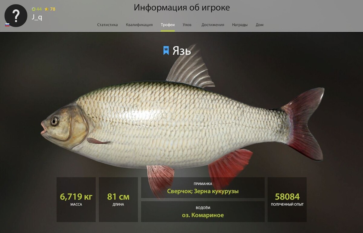 Рыбалка 4. Сегодня мы обсудим с вами одну интересную деталь. Информацию мне предоставил игрок РР4 с ником J_q, который предложил сделать гайд по такой рыбе как Язь на озере Комарином. Сам данный игрок охотился за синим трофейным язём 2 недели и в конце концов добился своей цели, помимо этого, за данный период он поймал ещё 50 трофеев. Соответственно, чтобы ему каждый раз подробно не расписывать информацию в личке интересующимся игрокам, предложил мне сделать гайд. Сам я как раз таки не обладаю опытом поимки рыбы и мне самому будет интересно. Язя на Комаринке я поймал случайно на мягкую приманку с джиговой оснасткой. Итак поехали, о чём же мне рассказал данный игрок. Первая главная особенность, это ловля именно на поплавочные снасти, так как клёв будет чаще. Не важно болонка, матч, мах, можете использовать что угодно. Если ловите на мах, то минимальный, который рекомендуется использовать это 7-ми метровый белмор на 8,6 кг,