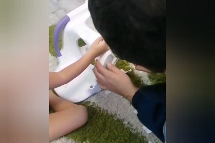 Сотрудники МУ «Служба спасения Волгограда» пришли на помощь ребенку, палец которого застрял в пластиковой спинке детского горшка. Об этой истории со счастливым финалом рассказали V102.RU в администрации города. Трехлетний волгоградец решил подробно исследовать «ночную вазу», в результате чего мизинец правой руки оказался в ловушке. Родители пытались освободить опухший пальчик ребенка, но ничего не получалось. Тогда испуганная мама вызвала спасателей. Специалисты, прибывшие на место, с помощью инструментов освободили руку мальчика. Ребенка успокаивали словами: «Терпи, солдат». Медицинская помощь малышу не потребовалась, а вот горшок теперь придется выкинуть. Скриншот видео администрации Волгограда t.me