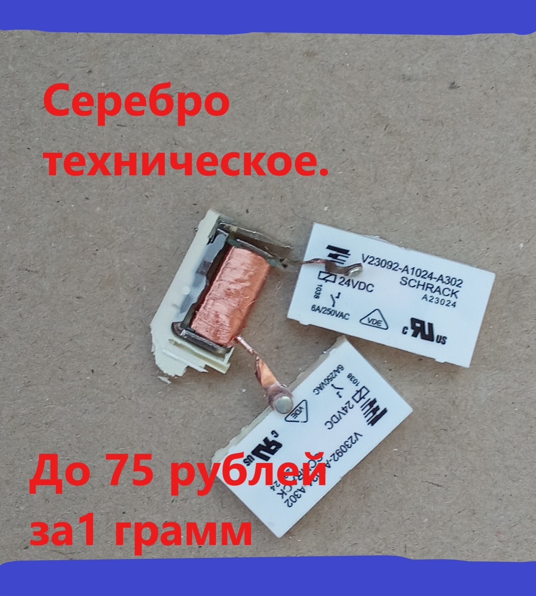 Всем привет! Попались не давно мне вот такие интересные радиодетали. Разобрал и как оказалось это реле. А реле у нас содержит серебро. Серебро сейчас стоит 106 рублей за 1 грамм. Цены не могут не радовать. По этому все радиодетали которые содержат серебро я конечно же собираю и все детали проверяю на наличие серебра. В таких и подобных реле серебро не чистое, а техническое. На фото хорошо видно серебряные контакты. В этом реле 3 серебряных контакта. Эти контакты хорошо снимаются кусачками с медной подложки. Попадаются в подобных реле и платиновые контакты. Эти контакты я проверил . Это серебро. Контакты с этого реле не магнитные, по этому они будут стоить от 58 рублей за 1 грамм. Магнитные контакты от 45 рублей грамм. Контакты на меди от 18 рублей грамм. Я думаю не плохая находка в свою копилку серебра. Всем кому было интересно не забывайте подписываться, писать комментарии и ставить ЛАЙКИ. Также подписывайтесь на мой RUTUBE канал . Ссылка на канал https://rutube.ru/video/7cc09552a7