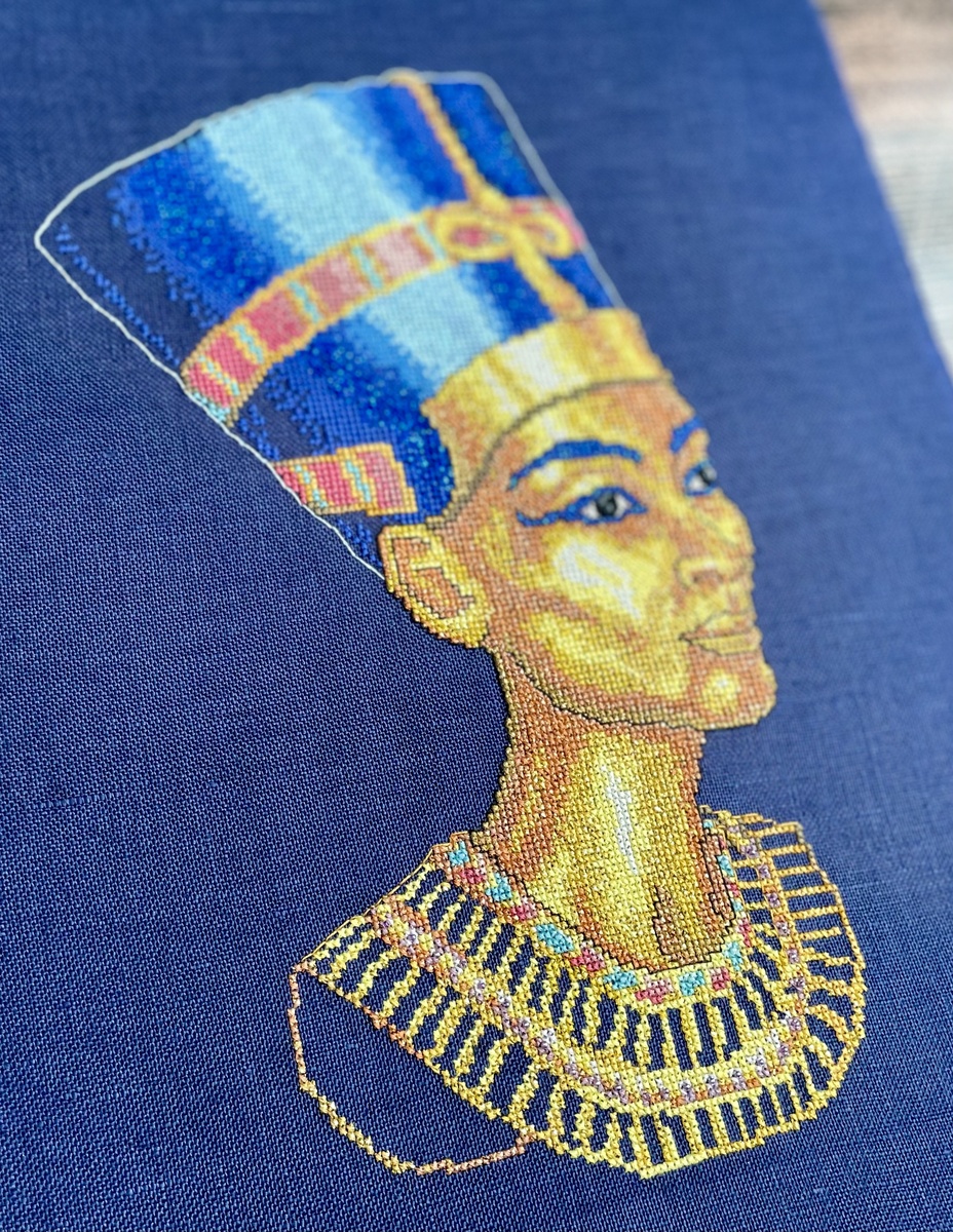 Пару лет назад я прослушала большой цикл лекций по религии древнего Египта и была так впечатлена, что погрузилась на какое-то время и в культуру того времени. И конечно же мне очень захотелось подкрепить это увлечением вышивкой. Так в моей коллекции наборов для вышивку появились 2 набора от Жанлинн с Нефертити и Тутанхамоном.