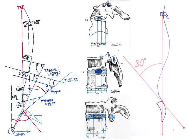 Данная концепция интересна тем что рассматривает сразу несколько центров тяжести составляющих постуральный баланс тела, главным из которых является ThV, ThVI позвонки и размер грудной клетки.