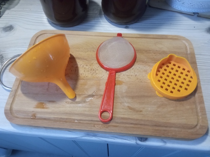 Краткое содержание 1 части. Группа лиц по злому умыслу погнала на холод едва долечившегося автора, чтобы последний воспроизвёл метод изготовления домашнего кваса, который в свою очередь в данное время года этой группе лиц не нужен. Автору удалось заготовить сухари под градом снежной крупы; размножить закваску, которая, как оказалось, не закваска; поставить квас, который и не квас вовсе, на брожение. Остается открытым вопрос, настоящие ли сухари? Продолжим наши эксперименты. Прошло где-то двое суток с момента, как закваска была внесена в сусло. Попробовал сусло - слабо-сладкое. По моему вкусу можно сливать. Если вдруг по каким-то немыслимым причинам сусло кислое, Вы в любой момент можете добавить сахар, НО... "Вовочка,два"! Класс, ложись!". Подготовим инструмент для слива и конечную посуду хранения. Я намерен с этих двух банок получить три с полтиной литра кваса. В каждую конечную посудину засыпаем чайную ложку сахара, чтобы в конечном продукте в перспективе появились газики. У меня нет