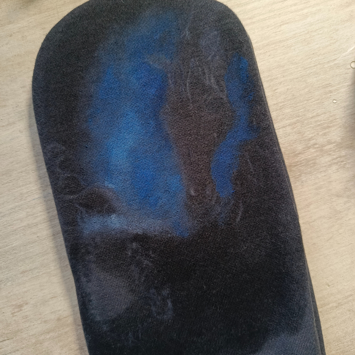 Эта варежка уже шла полегче: я приноровилась к этим краскам и понимала что и как хочу получить. Тут главное было попасть в цвет неба и травы, чтобы варежки дополняли друг друга. С небом получилось идеально, с травой чуть-чуть не попала.