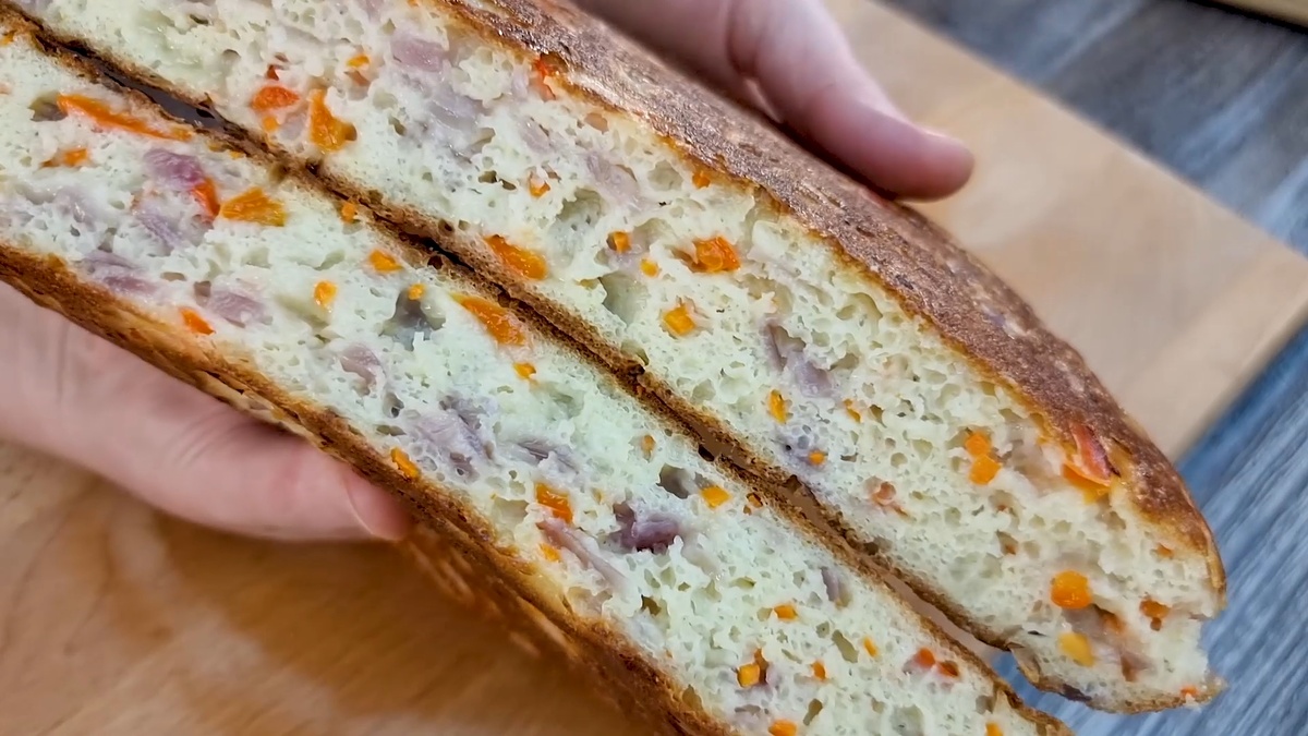 Дрожжевой хлеб на сковороде с овощным припеком. Быстро и вкусно!