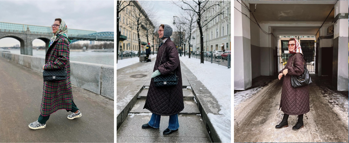 Даже не знаю, что меня впечатлило больше, ее неугомонная жажда позировать или... Впрочем, обо все по порядку Если вы еще не проснулись, Татьяна вас приветствует словами "вот и ...овногодие началось". Так она называет начало осени и особенности климата в нашем регионе. Наверное, из уст жены комика это должно звучать смешно. Но, судя по комментариям под записью, этот изысканный троллинг аудитория не оценила, а потом видео и вовсе исчезло Я самым честным образом перелистала все ее публикации за последний год, а там одних только отчетов за неделю - по 8-10 выходов. Но в интервью в ответ на вопрос "зачем каждый день так наряжаться", Татьяна ответила Признаться, ее послания этому миру до меня туго доходят. Что, например, она хотела сказать этими образами? Как воспринимать эти внезапные переходы от русского хороводного к блатному благородному? Да, последите за обувью, там такие ультрамодные модели попадаются, что аж завидно Любовь к подозрительным головным уборам, чепчикам, косыночкам сложно