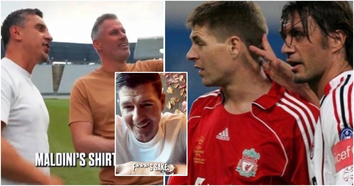 Джейми Каррагер вернулся на «Олимпийский стадион Ататюрка», где почти 20 лет назад состоялся знаменитый финал Лиги чемпионов между «Миланом» и «Ливерпулем». Компанию скаузеру составили Иан Райт, Рой Кин и Гари Невилл. Карра решил вспомнить о стамбульском чуде вместе со своим старым другом и набрал по видеосвязи Стивена Джеррарда. «А вот и капитан. Ты, конечно, узнаешь, где мы находимся. Я с собой взял парочку друзей», – обратился Джейми к Стивену, а затем перевел камеру на Гари и Роя. «Да чтоб тебя! – Выругался Стиви Джи, увидев парочку легенд «Ман Юнайтед». – Рой, ты можешь остаться. Гари, а ты свали». Каррагер рассказывал, что после финала ЛЧ в Стамбуле он и Джеррард получили футболку Мальдини. Стивен объяснил Невиллу, как так вышло: «Честно говоря, мне досталась футболка Шевченко, она дома, висит на стене». «Получается, та футболка Мальдини, что хранится у меня, настоящая?» – спросил Джейми. «Да, она должна быть настоящей. Только ты наверняка ее уже продал», – пошутил Стивен. «Я пок