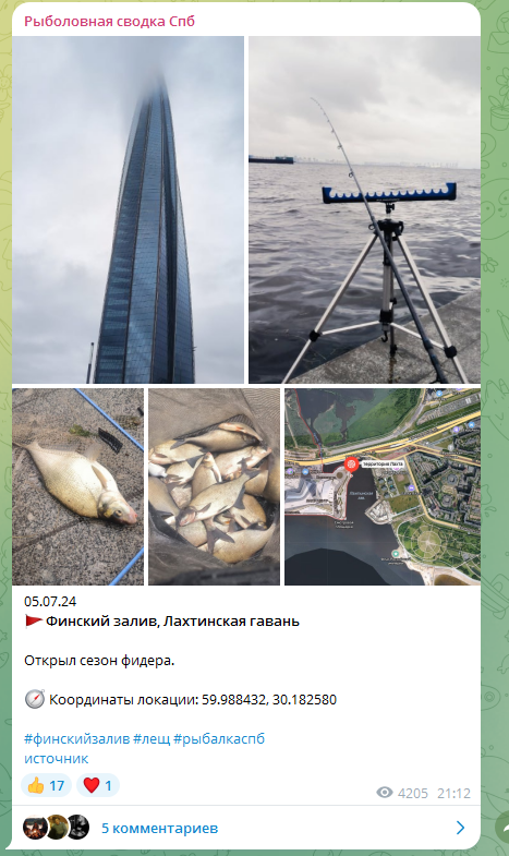 Для всех, кого заинтересовала рыбалка в Лахте, Лахтинской гавани и у Лахта Центра в Санкт-Петербурге, подготовил статью про топ лучших мест в этих локациях на Финском заливе. Читайте материал до конца, чтобы узнать где тут хорошо клюёт и где вообще есть подходы к берегу. Эта информация поможет поймать самим. Под рыбалкой в Лахте могут подразумевать несколько разных мест, поскольку это достаточно крупный исторический район Питера, с богатой историей ещё до постройки кукурузы. Начну с наиболее доступной и рыбной локации – это Лахтинская гавань. Со стороны Лахта Центра расположена отличная набережная, с которой удобно ловить на фидер. В гавани с весны по осень хорошо берёт лещ, также иногда попадается плотва. На спиннинг в гавани можно поймать окуня и порой даже судака, особенно при ловле в протоке Бобылка, что соединяет гавань с Лахтинским разливом. Из Финского залива через эту протоку проходит много разной рыбы, где за счёт более узких берегов там ей проще попасть под нос. Также в прото