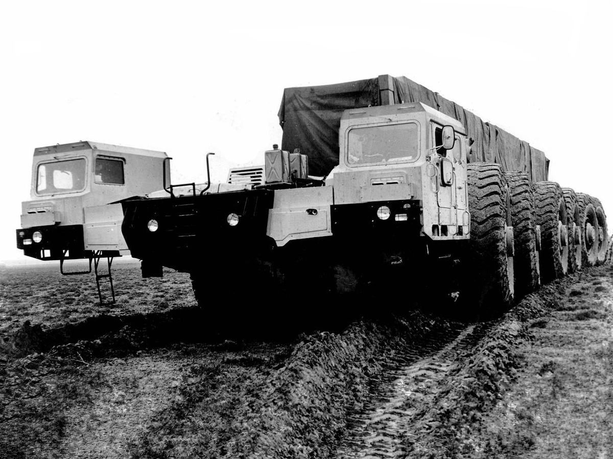 Один известный зарубежный инженер и бизнесмен сказал, что гениальность заключается в упорной работе. Именно это лучше всего отражает процесс создания сложного проекта — 12-осного тягача Советского Союза, который постоянно дорабатывался, пока не стал достойным образцом техники. Идея появилась в 1983 году, а результат мы увидели лишь на рассвете 2000-х годов.