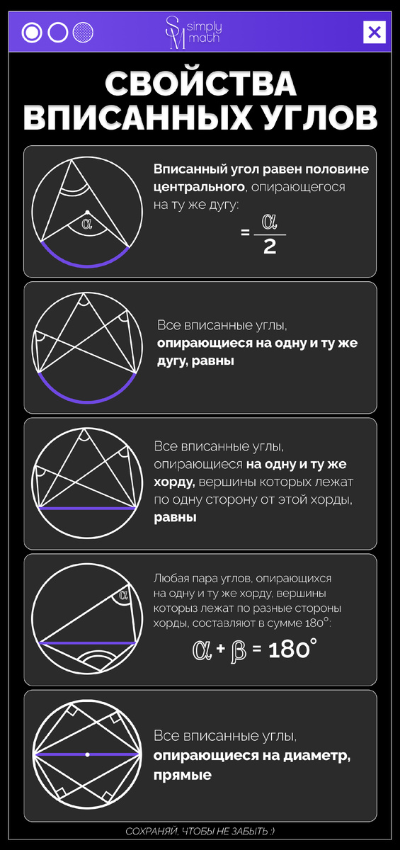 ШПАРГАЛКА ПО ГЕОМЕТРИИ. Свойство вписанных углов.