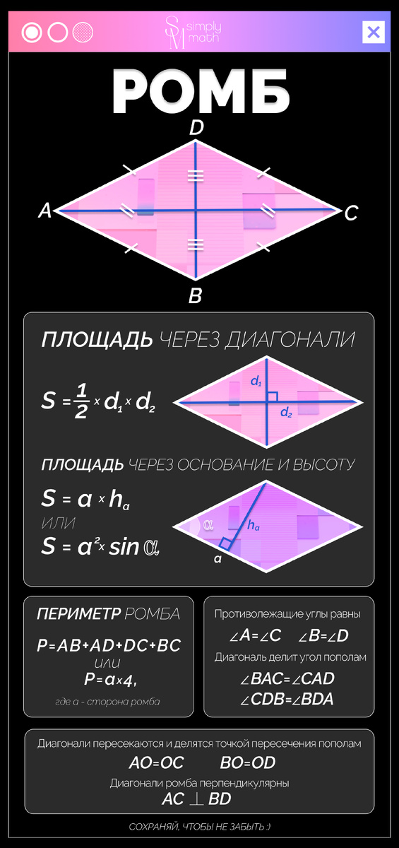 РОМБ. ШПАРГАЛКА ПО ГЕОМЕТРИИ.