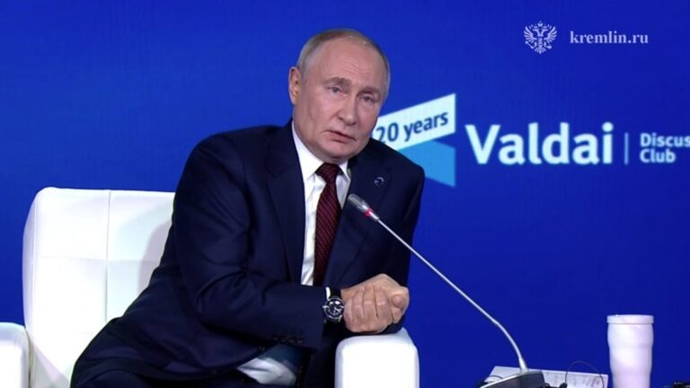 Президент России Владимир Путин принял участие в пленарной сессии XXI ежегодного заседания Международного дискуссионного клуба «Валдай». В ходе сессии глава РФ поздравил Дональда Трампа с избранием на пост президента США. «И я, пользуясь случаем, хочу поздравить его с избранием на пост Президента Соединенных Штатов Америки. Уже говорил, что мы будем работать с любым главой государства, которому окажет доверие американский народ. Так будет действительно и на практике», — сказал Владимир Путин. Также президент России отметил, что его впечатлило поведение Дональда Трампа в момент покушения. «Он мужественный человек оказался. И дело не только в поднятой руке и в призыве бороться за их общие идеалы. Дело не только в этом, хотя, конечно, это на драйве таком. Человек проявляет себя в экстраординарных условиях – вот здесь человек проявляет себя. И он себя проявил, на мой взгляд, очень правильным образом: мужественно, как мужчина», — прокомментировал Владимир Путин.