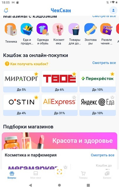 Ещё одно приложение для получения кэшбека за покупки онлайн, а также за сканирование чеков.