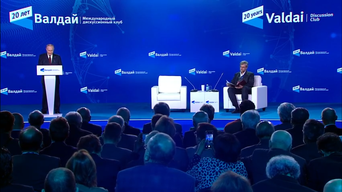 Путин выступил на заседании клуба "Валдай". Это дискуссионный клуб, который объединяет зарубежных и российских экспертов, разбирающихся в политологии, экономике, истории международных отношений. Все выступление, в том числе ответы на вопросы, длилось более 4 часов. При желании можно посмотреть запись, она есть, например, в ВК. Мы же остановимся только на том, что похоже на предсказания. Свою речь он начинает с воспоминаний о прошлых подобных встречах, подчеркивая, что мир непредсказуем. " Если оглянуться на 20 лет назад и оценить масштаб изменений, а затем спроецировать эти изменения на предстоящие годы, можно предположить, что следующее двадцатилетие будет не менее, а то и более сложным. Насколько, зависит от множества, большого количества факторов» "Наступает, в некотором смысле, момент истины. Прежнее устройство мира безвозвратно уходит. Можно сказать, что уже ушло, а за формирование нового разворачивается серьезная, непримиримая борьба. Непримиримая по той причине, что это да