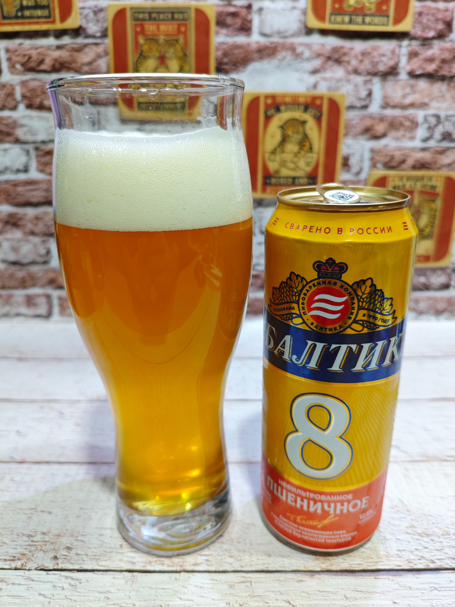 Чтобы раскрыть его богатый вкус на полную, выполните следующие шаги: налейте в бокал 2/3 бутылки Балтики 8, взболтайте оставшуюся треть и долейте остаток пива в бокал, сформировав устойчивую, округлую пенную шапку. ********************************************************************************** Плотность: 12.5%. Состав: вода питьевая очищенная, солод пивоваренный пшеничный, солод пивоваренный ячменный светлый и карамельный, хмелепродукты. Срок годности: 9 месяцев при температуре хранения от 0℃ до +30℃. С даты розлива моей банки прошло чуть менее 3-х месяцев. ********************************************************************************** Пена вполне присутствует и раствориться полностью не спешит. Аромат солодо