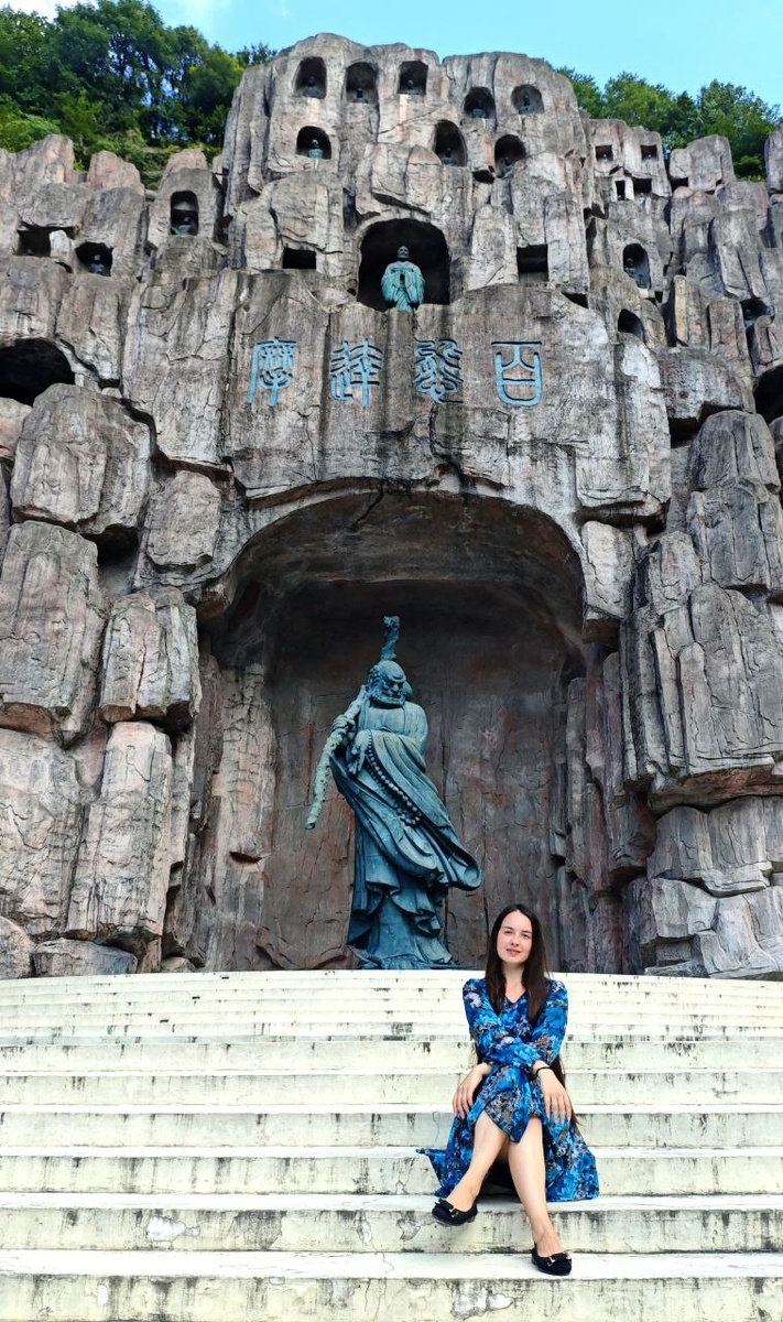 Нанкин – древний город, который заботиться о своем культурном наследии, поэтому мест для посещения здесь очень много Однако этот город не является горячим направлением для иностранных туристов, поэтому и информации о многих местах просто нет в зарубежном интернете. А когда живешь в Нанкине уже год и уже облазил все хайповые места из тур-списка, который почти не обновляется, и где названия просто кочуют с одной статьи в другую, начинаешь рыться в китайском интернете И вот на просторах Великого Китайского Интернета было найдено это место. Реставрация и строительство парка были закончены лишь в 2016 году, поэтому это место совсем новое. Вход в парк стоит всего лишь 30 юаней, а по студенческому билету вообще 15ю, но обо всем по порядку Парк лужицей растекается вокруг гор, а на одном из склонов волной возвышается терраса с множеством будд в бирюзовой расцветке. Согласно легенде, в этой пещере отдыхал сам Драхма – основатель Чань (Дзэн)-буддизма. Однако это место было ценно для ме