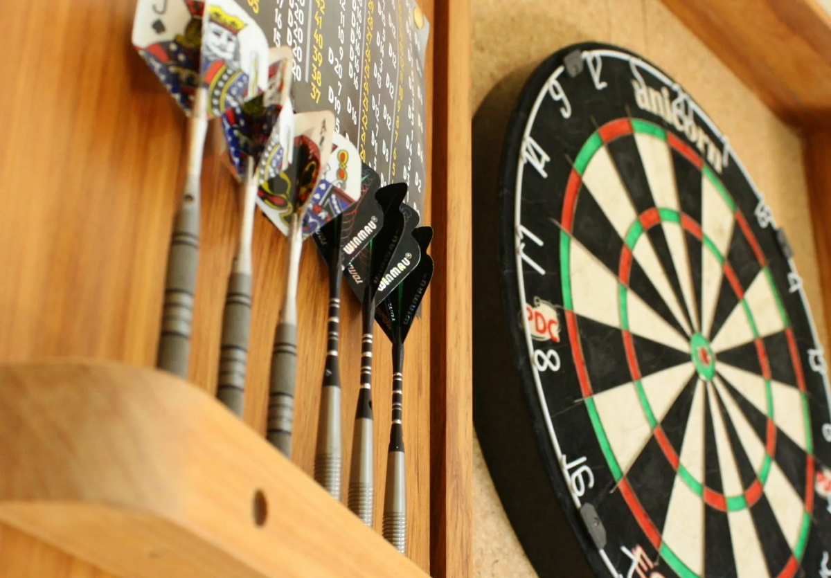 Самой распространенной пабовой игрой является, конечно, дартс. В любом помещении можно найти свободную стену для доски, а дротики вообще места не занимают, и … пожалуйте, дамы и господа!