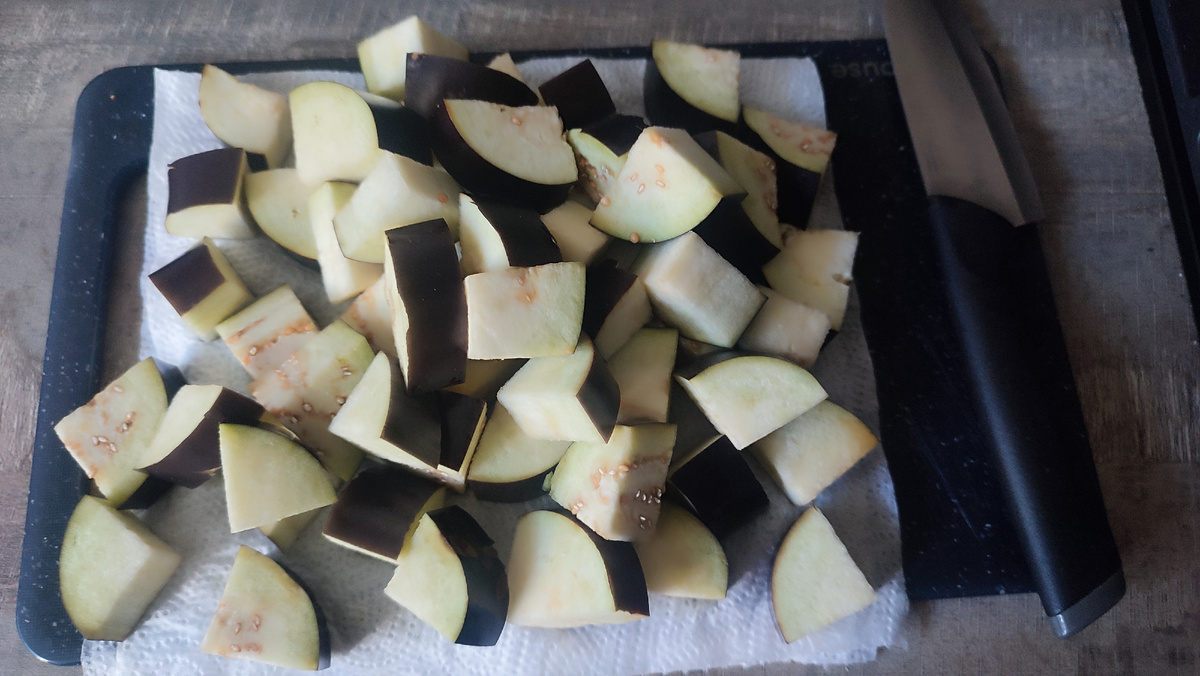 Ну и ваш любимый автор вернулся после довольно продолжительной паузы. Итак, перед вами преимущественно летний салат (потому что большинство ингредиентов можно сорвать на участке или купить на фермерском рынке). Для порции на двоих-четверых, в зависимости от аппетита, нам понадобится следующее: Для заправки нам потребуется скважина, а салату нужно будет добавить: Обойдемся без соли, мы же не в Питере, да и на дворе не зима, позже объясню почему. Приступим, - как говорит директор школы, в 11 вечера вытряхивая бюллетени на стол после выборов. Берём синенькие и делаем их мокренькими. Режем колечками, затем колечки режем ещё на 4 части, заливаем солёной водой и оставляем на полчасика. Потом сливаем воду, вываливаем их на бумажное полотенце, сверху кидаем ещё одно такое же, тем самым убирая лишнюю влагу. Ещё момент, о котором чуть не забыл, толщина колечек должна быть в районе сантиметра, а то выйдет в конце сплошной хруст, без нежной мякоти внутри. Достаем тем временем близкого человек