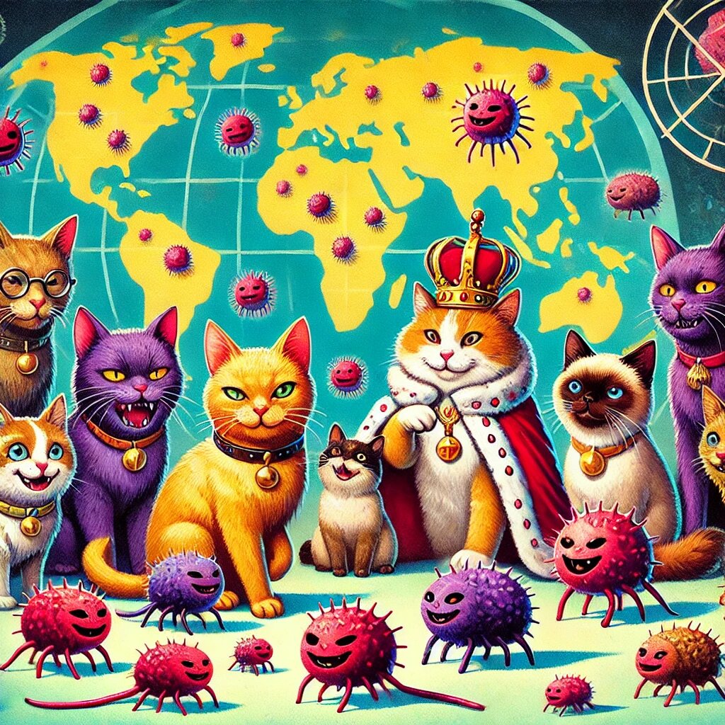 Многие люди по всему миру из покон веков любили этих животных, а в древнем Египте их и вовсе боготворили и, теперь все стало, на свои места, кошки наравне с грибами поработили человечество. Все мы всего лишь их слуги, и у нас нет выхода из этого порочного круга... Токсоплазма (Toxoplasma gondii) — это одноклеточный паразит, который может инфицировать большинство теплокровных животных, включая людей. Инфекция токсоплазмой, известная как токсоплазмоз, обычно проходит без симптомов, однако новые исследования указывают на возможные изменения в поведении и психическом состоянии человека, а также на влияние токсоплазмы на привязанность человека к домашним животным, особенно к кошкам. Токсоплазма передается через зараженные продукты, или контакт с фекалиями кошек. При ослабленном иммунитете инфекция может вызывать серьезные осложнения, включая воспаление мозга и поражение внутренних органов. По данным Всемирной организации здравоохранения, токсоплазмоз является одной из наиболее распростр