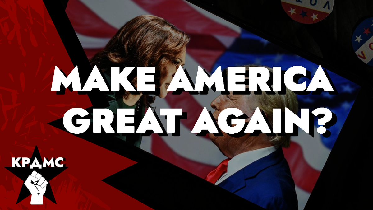 Несмотря на, казалось бы, уверенную победу Трампа, американское общество теперь расколото пополам, а итоги выборов ярко иллюстрируют банкротство политической модели США и глубокий упадок страны. По-сути, американцам предоставили выбирать между реакцией и реакцией, между промышленным и банковским капиталом, впрочем, как и всегда. Кризис в США тянется не только не первый год, но даже не первую пятилетку, и их загнивающий (без кавычек) империализм до сих пор не сгнил лишь за счет огромного запаса прочности, достигнутого путем ограбления половины земного шара, зависимой от доллара. Но все когда-нибудь кончается. Современный экономический кризис, охватывая уже весь мир, схлопывает для США возможности мировой гегемонии. В попытке удержать свою «кормушку», США подобны Британской Империи начала 20го века: они также развязывают войны, также пытаются «разделять и властвовать» и также исторически обречены на провал, проигрывая по темпам роста более энергичным экономикам КНР и даже Индии. Под красивым лозунгом «Make America Great Again!» Трамп стремится вернуть в США реальное производство и дать индустрии стимул к развитию, но неизбежная тенденция империализма к расширению влияния умножает на 0 все его предлагаемые полумеры, вроде борьбы с мигрантами, сокращения социальных расходов (создание более привлекательного климата для ведения бизнеса на территории США), более умеренного вмешательства во внутренние дела других стран. Невозможно быть немного беременным: невозможно вернуть капиталы в США, не отказавшись от империализма; невозможно отказаться от империализма, не отказавшись от капитализма. Полумеры Трампа, даже если дадут временный положительный (для экономики) результат, глобально обречены на провал.