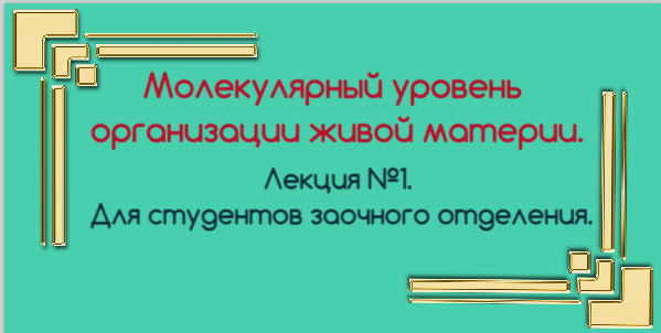 Таким образом, сегодня мы познакомились с общей характеристикой молекулярного уровня организации живой материи. Изучили органические и неорганические элементы и вещества в живых организмах. Дали характеристику нуклеиновым кислотам, нуклеотидам и ферментам. Выяснили, какие организмы называются вирусами.