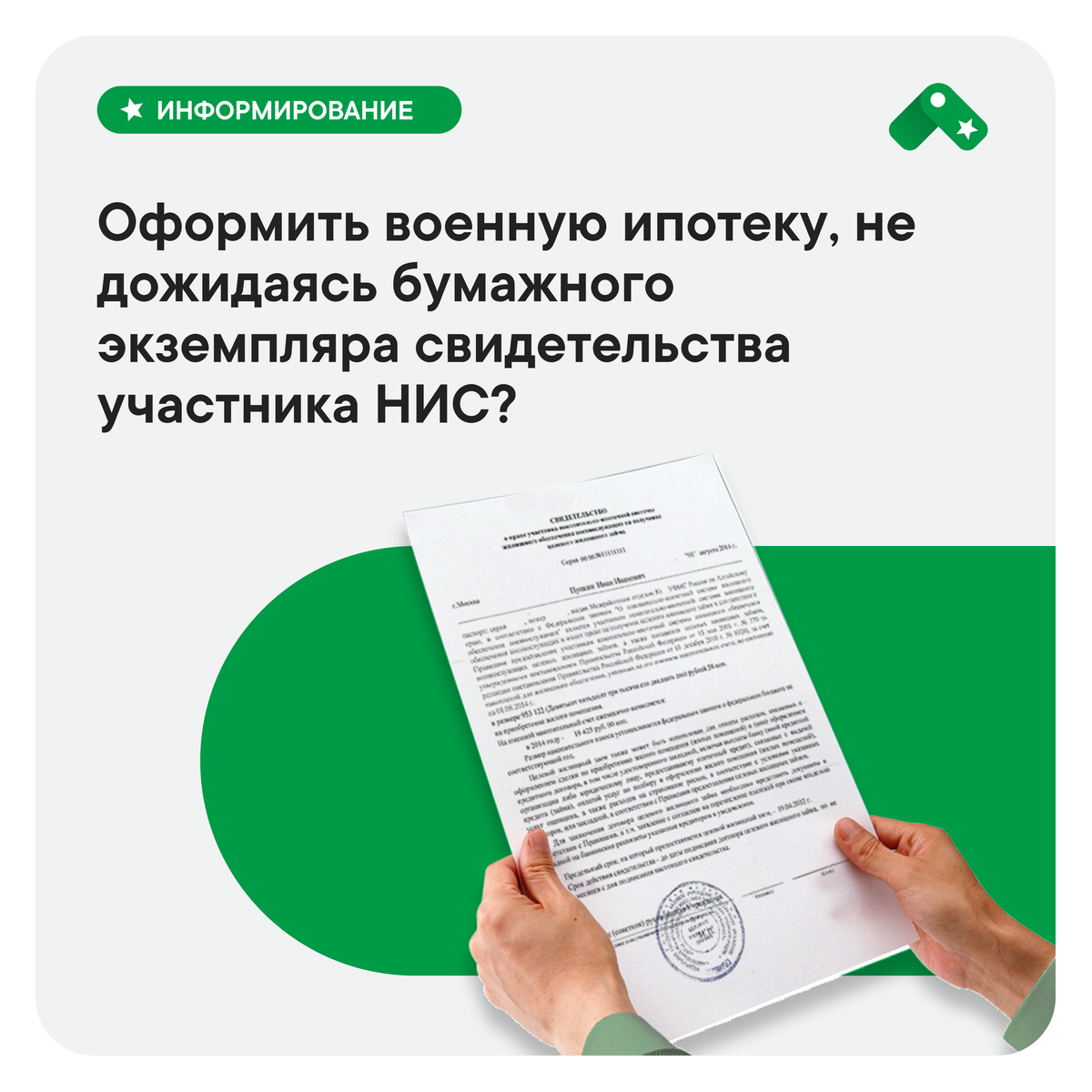 Напомним, как сэкономить драгоценное время. Достаточно зайти на сайт Росвоенипотеки, ввести свой регистрационный номер участника НИС (он написан на уведомлении о включении в реестр, которое должно быть у вас дома, и копия в личном деле) и дату рождения. Если свидетельство готово, то вы увидите информацию, которую прикладываем ниже. Это и есть современный электронный вариант свидетельства. С этим файлом можно не только подать заявку на ипотеку, но и полностью провести сделку. На сегодняшний день, для удобства своих клиентов, по такой схеме работают: ПСБ, Россия, Севергазбанк, ВТБ! О НАС: