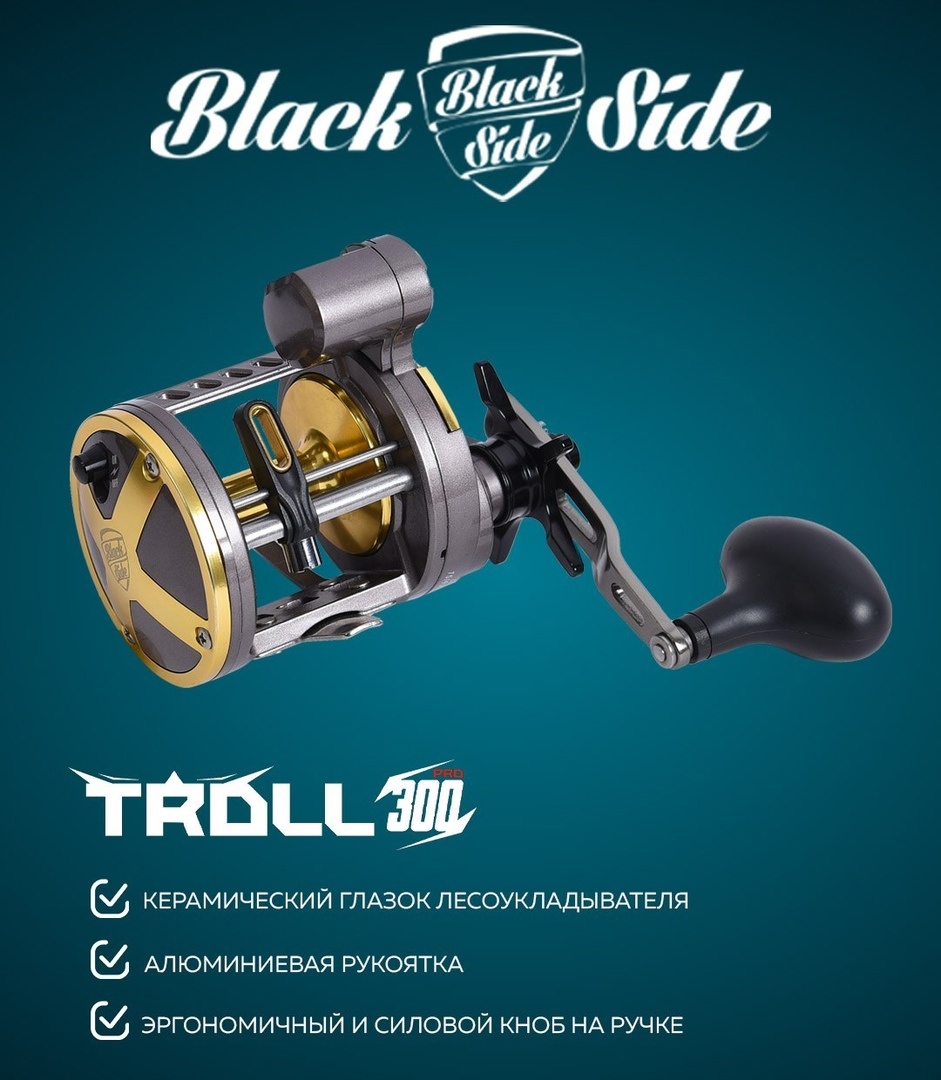 Troll 300 ещё одна модель из будущей линейки троллинговых катушек от бренда Black Side. Эти катушки оснащены алюминиевой шпулей и имеют повышенную нагрузку на фрикцион.