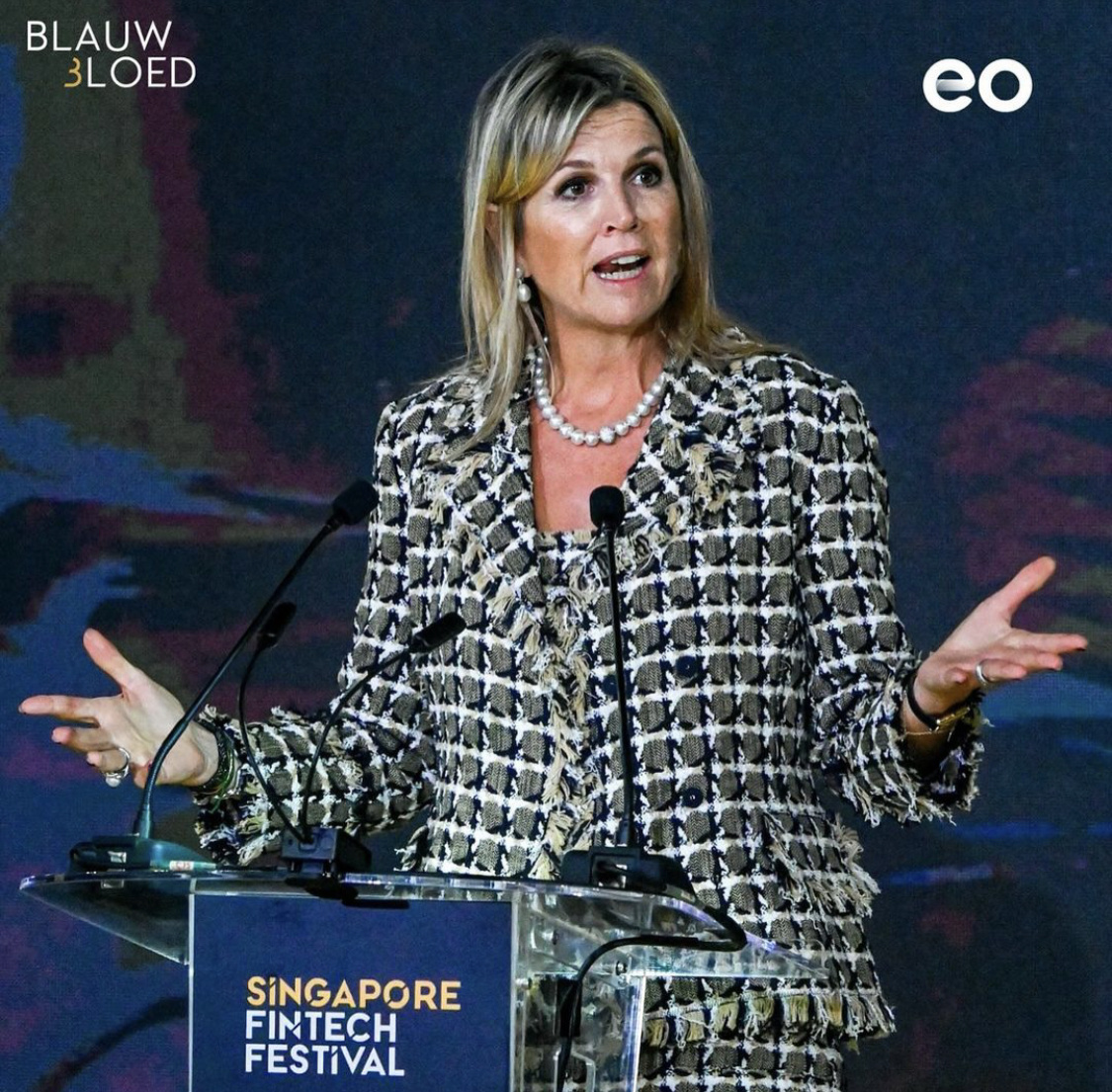 Итак, королева-модница сейчас в Сингапуре с краткой, но деловой поездкой. Королева Максима находится на фестивале FinTech в качестве специального защитника финансового здоровья Генерального секретаря ООН (UNSGSA). В первый день Максима показала полюбившийся ей твидовый комплект от Оскара де ла Ренты, который многие ошибочно приняли за Chanel. Она уже надевала платье из его же коллекции впервые месяц назад. Во второй день фестиваля королева посетила сессию на тему «От финансовой доступности к финансовому здоровью» в Сингапурском ЭКСПО-центре. После этого она встретилась с премьер-министром Сингапура Лоуренсом Вонгом в президентском дворце Истана. Максима была в платье бельгийского дома моды Natan, которое она надевала несколько раз с 2015 года. Сумочка Chanel, туфельки от G.Rossi. Мы знаем, что 90 процентов ее нарядов от Дома Натан(Natan), а обувь от Росси (Rossi). Но всегда интересно , кого она прикупит из оставшихся 10 процентов. В отличие от подружки, королевы Матильды (пер