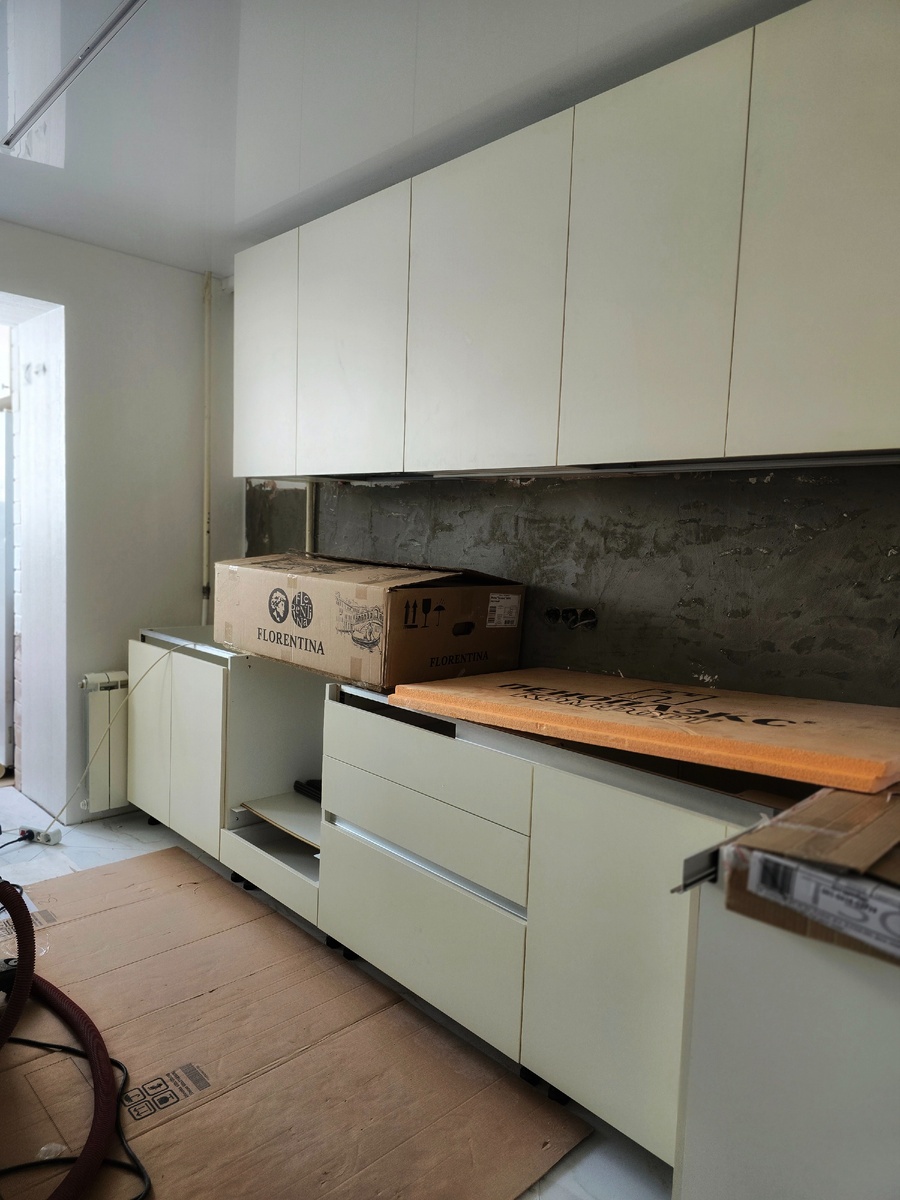 Друзья, приветствую. Давайте вкратце и основное. Кухню мою привезли, все отлично. В процессе перевозки ничего не повредили. Перевозчикам плюс. В данный момент идет процесс сборки. Третий день. И он уже закончился. Будет день четвертый. Все эти дни я, можно сказать, невыездная. Три дня сиднем сижу дома, даже на улицу не выходила, только в форточку дышала. А за это время к нам успела пртйти зима. Снег выпал и похолодало. А дома сижу, потому что обязана присутствовать при выявлении "косяков", а их выявилось достаточно. Каждый недочет фотографирую. То, что получается внешне, меня вполне устраивает, но качество изготовления и момент клиентского сопровождения - нет. Получилось: заплатил и отвали. Дальше нам всем не интересно. Парнишка-сборщик достаточно толковый и ответственный, три дня, как раб на галерах исправляет недоработки фабрики и дизайнера. чуть ли не все шкафы перептлил и заново пересверлил. Вот так🤷♀️. За ту сумму, что мы отдали за изготовление этой кухни, хотелось бы боле